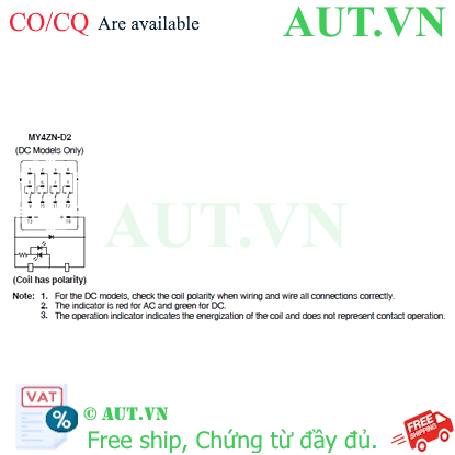 Rơ le trung gian Omron MY4ZN-D2 DC48 4PDTDòng điện: 3ARơ le trung gianSố chân: 14 chânHình dạng chân: DẹtĐiện áp cuộn dây: 48VDC nhà chế tạo: Omron SKU: MY4ZN-D2 DC48 Tải xuống mẫu Giá cũ: 588.179 ₫ Giá bán: 490.149 ₫ Số lượng: Thêm vào giỏ hàng Danh sách yêu thích tùy chỉnh được Thêm vào danh sách yêu thích Thêm vào danh sách so sánh Gửi email cho một người bạn Thông tin chi tiết của: Rơ le trung gian Omron MY4ZN-D2 DC48 Thông số kỹ thuật cơ bản của: MY4ZN-D2 DC48 Coil ratings 48 VDC 17.6 mA Operating indicator LED Coil surge killer Diode Contact form 4PDT Contact method Bifurcated Contact material Au clad + Ag alloy Contact rated load 220 VAC 3 A (Resistive load) 220 VAC 0.8 A (Inductive load (cosφ = 0.4)) 24 VDC 3 A (Resistive load) 24 VDC 1.5 A (Inductive load (L/R = 7 ms)) Terminal structure Plug-in terminal Thông số kỹ thuật chi tiết của: MY4ZN-D2 DC48 RatingsOperating indicatorLEDCoil surge killerDiodeDegree of protectionClosed type (cover)Terminal structurePlug-in terminalCoilCoil ratings48 VDC 17.6 mACoil resistance2725 ΩOperate voltage (Set voltage)80 % max.Release voltage (Reset voltage)10 % min.Maximum voltage110 % (23 ℃)Power consumptionApprox. 0.9 WContactContact rated load220 VAC 3 A (Resistive load)220 VAC 0.8 A (Inductive load (cosφ = 0.4))24 VDC 3 A (Resistive load)24 VDC 1.5 A (Inductive load (L/R = 7 ms))Max. contact voltage250 VAC125 VDCMax. contact currentAC: 3 ADC: 3 AMaximum switching power660 VA (Resistive load)176 VA (Inductive load (cosφ = 0.4))72 W (Resistive load)36 W (Inductive load (L/R = 7 ms))Contact form4PDTContact methodBifurcatedContact materialAu clad + Ag alloy Cam Kết Chất Lượng và Dịch Vụ Chúng tôi có hơn 35.000 sản phẩm vì vậy hãy liên hệ với chúng tôi Để được tư vấn và check tình trạng hàng bạn nhé! AUTO TECH VN cam kết: 1. Hàng Chính Hãng. 2. Xuất được Hóa đơn VAT. 3. Cấp CO/CQ đầy đủ. 4. Giá cạnh tranh. 5. Sản phẩm bảo hành theo chính sách của hãng.6. Miễn Phí hỗ trợ cài đặt và sử dụng thiết bị. Thông Tin Liên Hệ Mua Hàng AUTO TECH VN - AUT.VN ĐT/ Zalo : 0968.053.025 Email: support@aut.vn Email2: sale@aut.vn Địa chỉ: 07 KĐT Flora Mizuki, Đường Số 1, Bình Hưng, Bình Chánh, Hồ Chí Minh Thẻ sản phẩm Omron (49476) , Rơ le trung gian (5062) , Relays (1031) , MY (237) , General Purpose Relays (304) , For Control Panel (302) Những sản phẩm liên quan Phụ kiện khác Omron PYC-S FOR MY Weight: 1.8gNumber of: Individual 1 clipsApplicable sockets: For square socketsApplication: MY series, Application: LY series, Application: G3F(D) series, Application: G3FM, Application: G3H(D) series, Application: G9H 8.360 ₫ Thêm vào giỏ hàng Thêm vào danh sách so sánh Danh sách yêu thích tùy chỉnh được Thêm vào danh sách yêu thích Phụ kiện khác Omron PYC-A1 FOR MY Weight: 0.54gNumber of: One set 2 clipsApplicable sockets: For square socketsApplication: MY series, Application: LY series, Application: MY4H, Application: LY2I, Application: G3F(D) series, Application: G3FM, Application: G3H(D) series, Application: G9H, Application: MY2I 9.025 ₫ Thêm vào giỏ hàng Thêm vào danh sách so sánh Danh sách yêu thích tùy chỉnh được Thêm vào danh sách yêu thích Phụ kiện khác Omron PYC-P FOR MY Weight: 1.4gNumber of: One set 2 clipsApplicable sockets: For square socketsApplication: MY series, Application: LY series, Application: G3F(D) series, Application: G3FM, Application: G3H(D) series, Application: G9H 9.500 ₫ Thêm vào giỏ hàng Thêm vào danh sách so sánh Danh sách yêu thích tùy chỉnh được Thêm vào danh sách yêu thích Phụ kiện khác Omron PYC-1 (CLIP FOR MYV) Weight: 6gNumber of: Individual 1 clipsApplicable sockets: For square socketsApplication: MY2Z-CR, Application: MY2ZN-CR, Application: MY3-CR, Application: MY3N-CR, Application: LY2-CR, Application: LY2N-CR, Application: LY3-CR, Application: LY3N-CR, Application: LY4-CR, Application: LY4N-CR 9.690 ₫ Thêm vào giỏ hàng Thêm vào danh sách so sánh Danh sách yêu thích tùy chỉnh được Thêm vào danh sách yêu thích Phụ kiện khác Omron Y92H-3 (CLIP FOR H3Y) Number of: One set 2 clipsApplicable sockets: For square socketsApplication: MY2Z-CR, Application: MY2ZN-CR, Application: MY3-CR, Application: MY3N-CR, Application: LY2-CR, Application: LY2N-CR, Application: LY3-CR, Application: LY3N-CR, Application: LY4-CR, Application: LY4N-CR, Application: H3Y series 11.590 ₫ Thêm vào giỏ hàng Thêm vào danh sách so sánh Danh sách yêu thích tùy chỉnh được Thêm vào danh sách yêu thích Phụ kiện khác Omron PYC-P2 FOR MY Weight: 1.2gNumber of: Individual 1 clipsApplicable sockets: For square socketsApplication: LY2I, Application: LY3I, Application: LY4I, Application: MY2I, Application: MY3I, Application: MY4I 20.710 ₫ Thêm vào giỏ hàng Thêm vào danh sách so sánh Danh sách yêu thích tùy chỉnh được Thêm vào danh sách yêu thích Đế rơ le Omron PYFZ-14 6A250VACBắt vítChân pin dẹtSố chân cắm: 14Lắp thanh ray DIN, Lắp mặt (bắt vít) 123.500 ₫ Thêm vào giỏ hàng Thêm vào danh sách so sánh Danh sách yêu thích tùy chỉnh được Thêm vào danh sách yêu thích Đế rơ le Omron PYFZ-14-TU 6A250VACChân pin dẹtSố chân cắm: 14Lắp thanh ray DIN, Lắp mặt (bắt vít) 168.720 ₫ Thêm vào giỏ hàng Thêm vào danh sách so sánh Danh sách yêu thích tùy chỉnh được Thêm vào danh sách yêu thích Đế rơ le Omron PYF14T FOR MY 5A300VACBắt vítChân pin dẹtSố chân cắm: 14Lắp thanh ray DIN 246.240 ₫ Thêm vào giỏ hàng Thêm vào danh sách so sánh Danh sách yêu thích tùy chỉnh được Thêm vào danh sách yêu thích Đế rơ le Omron PY